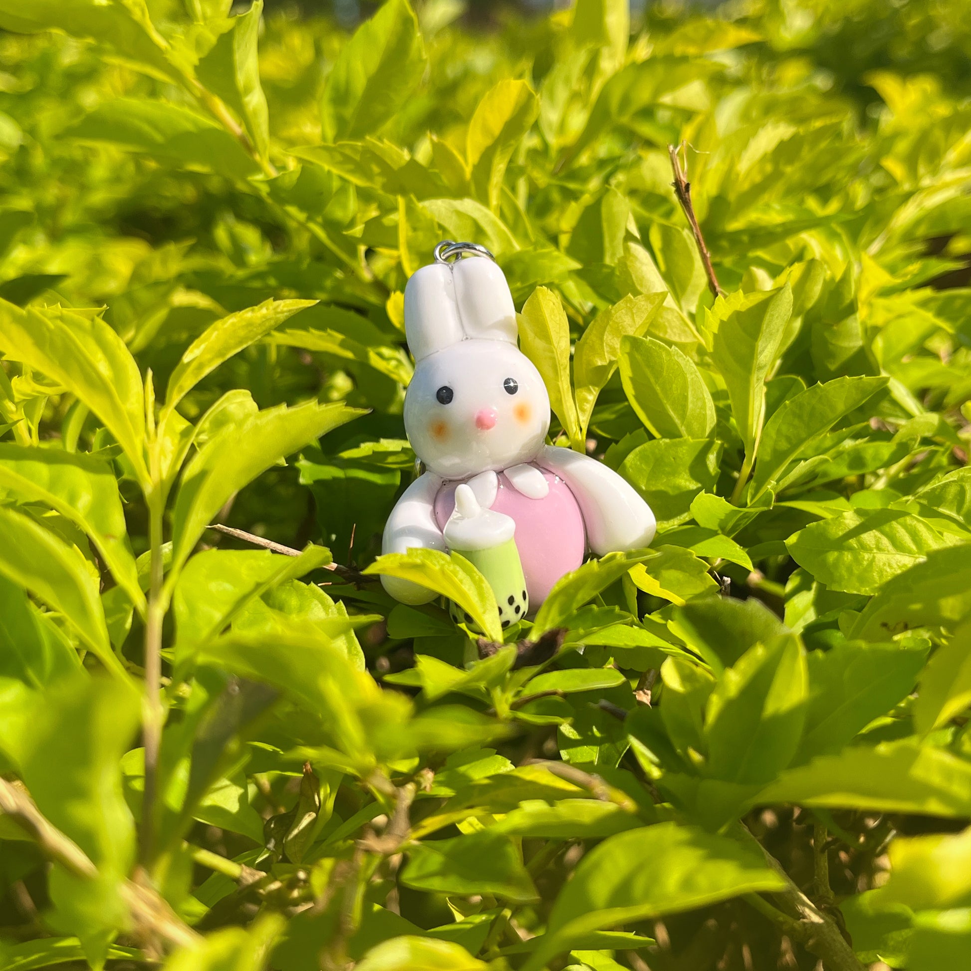 Cute Bunny Clay Keychain with Matcha Bubble Tea